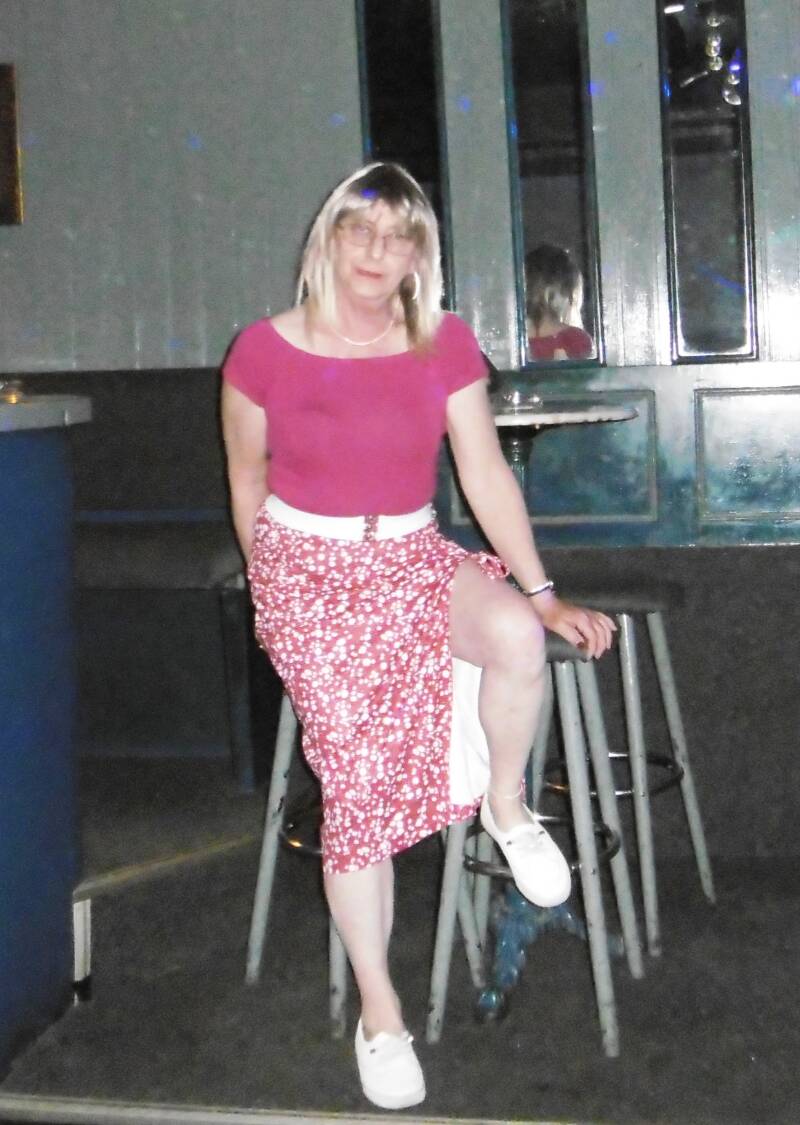 Nicht in Weihnachtsdessous, aber in meinem schönen roten Schlitzrock fuhr ich in die City. Beim Aussteigen dann der Schock: Der Reißverschluss war kaputt; an der Rückseite klaffte nun ein großes Loch. Unmöglich, so auf die Straße zu gehen. Reparaturversuche waren vergeblich, also musste Plan B her, und ich wechselte zu dem roten Minirock, den ich zusätzlich mitgenommen hatte. Das war zwar nicht das, was ich eigentlich wollte, aber immer noch besser, als den Ausflug abbrechen zu müssen. Es zeigte sich wieder einmal, wie sinnvoll es ist, Ersatz dabei zu haben. In weißen Stiefeln und Minirock war ich im Rotlichtviertel gut aufgehoben, denn der Straßenstrich ist nicht weit von der Bar Voyage entfernt, aber überraschenderweise kam ich in der Bar an, ohne dass mir irgendwelche Angebote für ein intimes Beisammensein gemacht wurden. Das habe ich auch schon anders erlebt…
